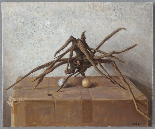 2020年新冠疫情期间,紫云开始做他的绘画直播课,这个展览中的一些作品,就是他在直播中完成的。以我观察,紫云画画的过程有两个特点:首先,他热衷于写生,写生的过程往往很长,并且乐于根据对象在时间中的变化不断改变画面,这种观察方法有现象学的影响;其次,他的作品带有很强的理性气息,理性精神是他的本色,但却并不是他的全部,因为他还热衷于在辛苦经营的画面上肆意破坏,然后再恢复到理性状态收拾局面,如此理性与感性、建构与破坏交替进行,一幅画的创作过程可以拖得很久,也蕴含了很多不确定性与意外。这种独特的创作过程已经内化为紫云个人的一种思维和表达方式,在这次展览的作品中多有体现,并且赋予了这些景物与风景画以不确定性、时间感和超越感等特征。当然个人创作是一回事,要面对专业水平不一的学生授课又是另外一回事。据紫云说,直播课的形式对于他系统总结理论认识、规范实践程序,起到了积极作用。从自由随意的艺术家到授课者的身份转换,迫使他尽可能剖析自己,把自己的观察方法和创作方法展现给学生。当然,绘画的教授方式本就不应有统一的执行标准,“对”与“错”的判断在艺术中尤其没有意义,究竟应该教什么、怎么教,根本还是紫云自己对艺术的理解。