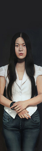 “陌·相”展览展出的是申胜秋、张绍垣、刘仁杰、杨飞云、胡建成、刘亚明、庞茂琨、刘钧、程勇九位艺术家的近四十幅人物肖像作品,艺术家们选取生活中最为熟知的场景和人物作为描绘对象,运用或现实主义或古典主义或照相写实主义的不同表现手法,生动逼真地刻画出人物的外在特征和内在神韵,以形传神,表现出人物的内在气质和情感。然而,这些形象对于我们来说却又是既熟悉又陌生的。熟悉是指人所具有的共性,比如喜怒哀乐的表达,陌生则是指人的个性不同,人的内心世界难以扑捉,虽然我们很熟悉对方但也经常会有难以解读对方的感受,因为真实的内心常常被隐藏,这是人性的疏离。人与人的情感既近又远,既远又近。